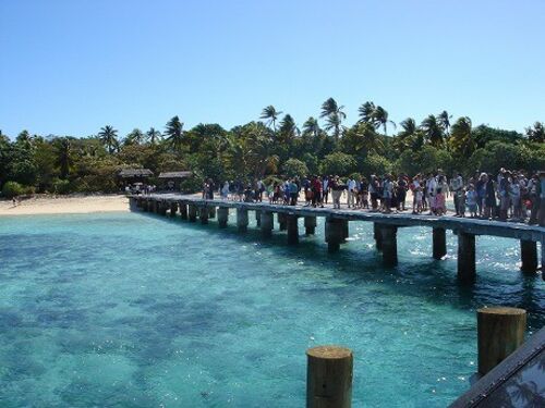 トレジャー・アイランド・リゾートから見た朝日。本島ビチレブ島から朝日が昇ります。 またまたシュノーケリング。まさにブルックシールズの青い珊瑚礁。