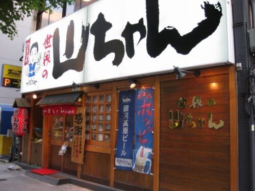 名古屋市の世界の山ちゃん伏見錦通り店。 幻の手羽先。 海老ふりゃー。 みそ串カツ。 どてめし。 純系名古屋コーチン笹身天ぷら。