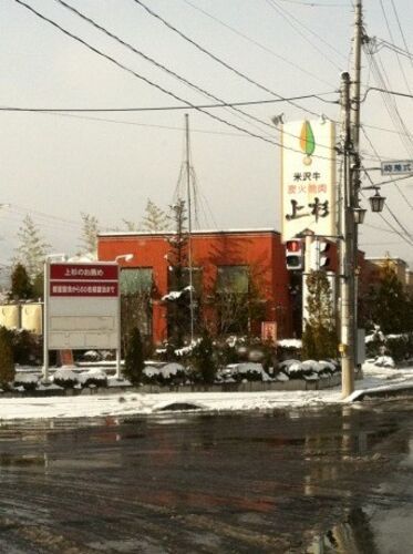 福島市笹谷にある福島市内で一番美味しい焼肉屋さん「米沢牛炭火焼肉 上杉」。値段もいいが間違いない。 入口にある看板。これから入店。 タン塩(1,029円)。今日はタンからスタート。 チョレギサラダ(609円)。ドレッシングが旨い。 上杉のキムチ(504円…